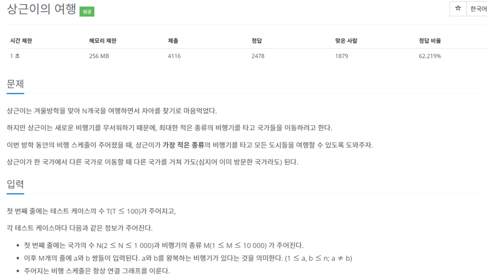 [9372] 상근이의 여행