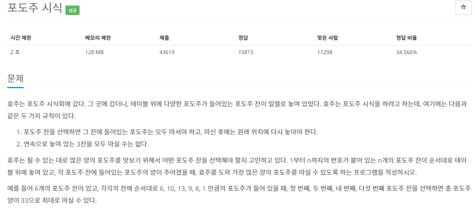 그리고 반복문 안에서도 현재 포도주를 안먹는 경우를 생각해 줘야 한다.