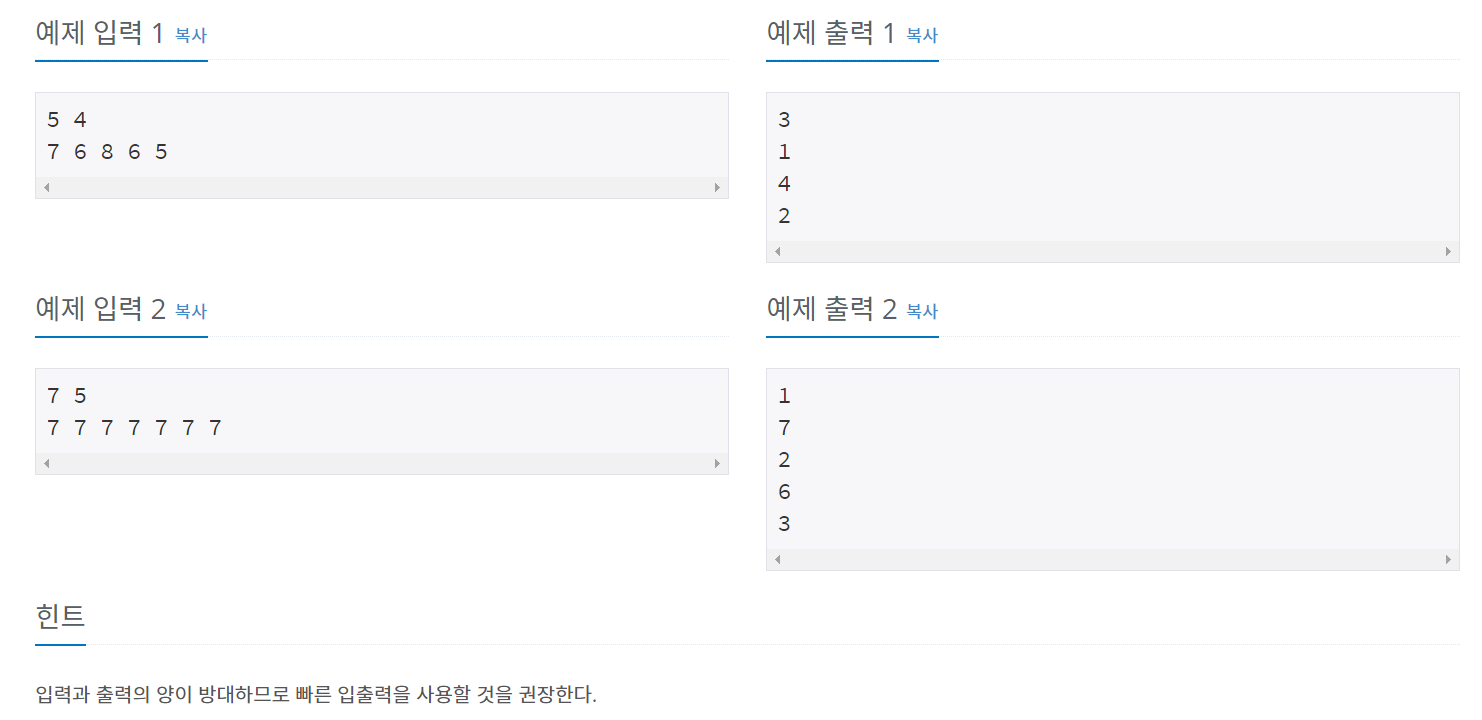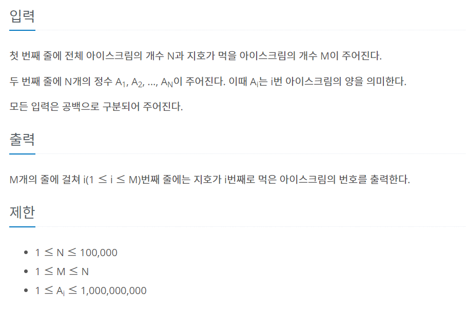 이제 M개만큼 아이스크림을 먹는 순서를 출력하면 된다.