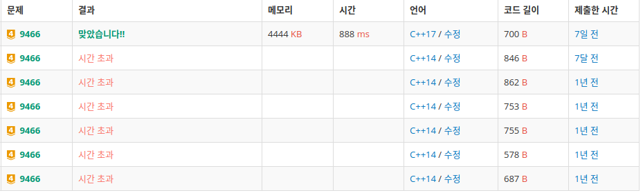 9466번: 텀 프로젝트