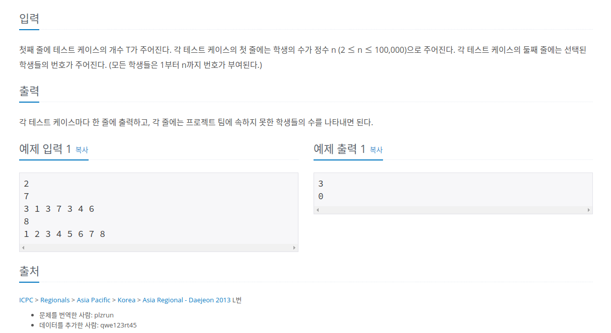 //BOJ 9466 텀 프로젝트