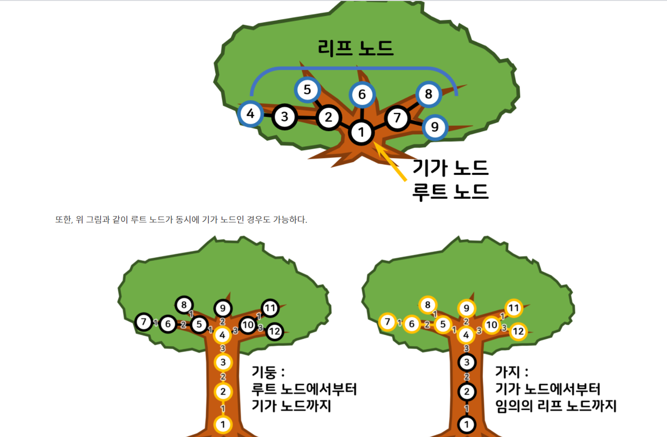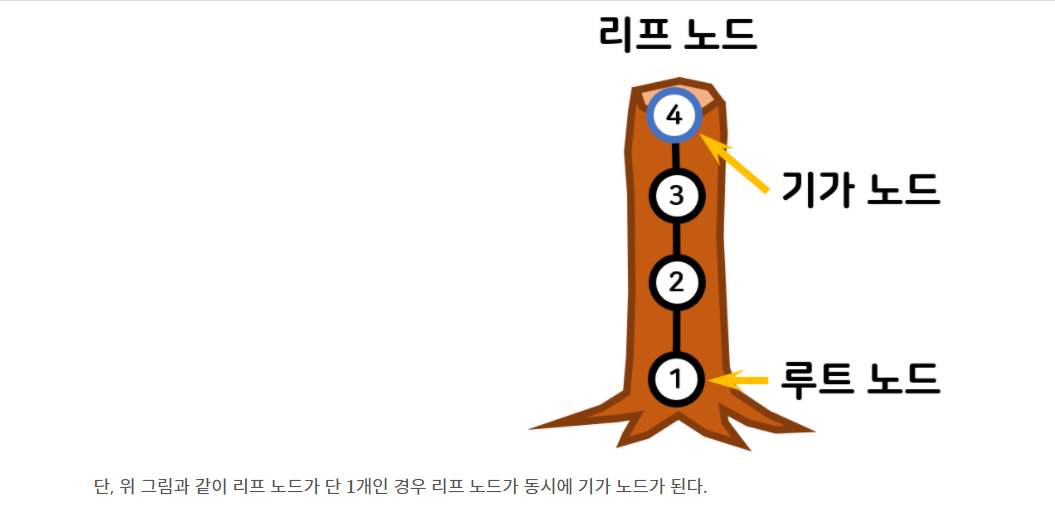 만약 벡터에 연결된 노드가 한개 밖에 없다면, 현재 노드가 루트일 경우 재귀 , 아닐 경우 그 노드가 리프노드임으로 기가노드가 된다.