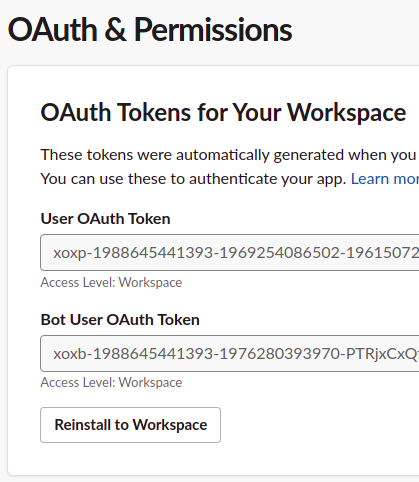 "BOT_USER_OAUTH_ACCESS_TOKEN": "xoxb-~~~~"