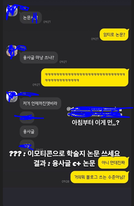 - 연구실에서 커스텀 이모티콘 개발하는 일을 끝냈다. 그래서 시원, 희선이와 함께 기뻐했는데 랩미팅에서 눈을 부비적 거리다가 멀티미디어 학회 춘계 학술대회에 투고하라는 말씀을 들었다. (에에 이걸?..) 왜냐면 진짜로 못 만들었다. 그니까 못 만든게 디자인 이런 느낌이 아니라 정말 .. 셋이서 아무것도 모르고 코딩한 느낌이라서. 무튼 그 소식을 듣고 셋의 반응은 1. 현실 부정, 2. 까먹기 였다. 그리고 잊고 살던 셋에게 다시 한번 확인 사살이 들어와서 진짜 만나서 논문(이라고 하기엔 그냥 보고서 같은 글)을 썼다.