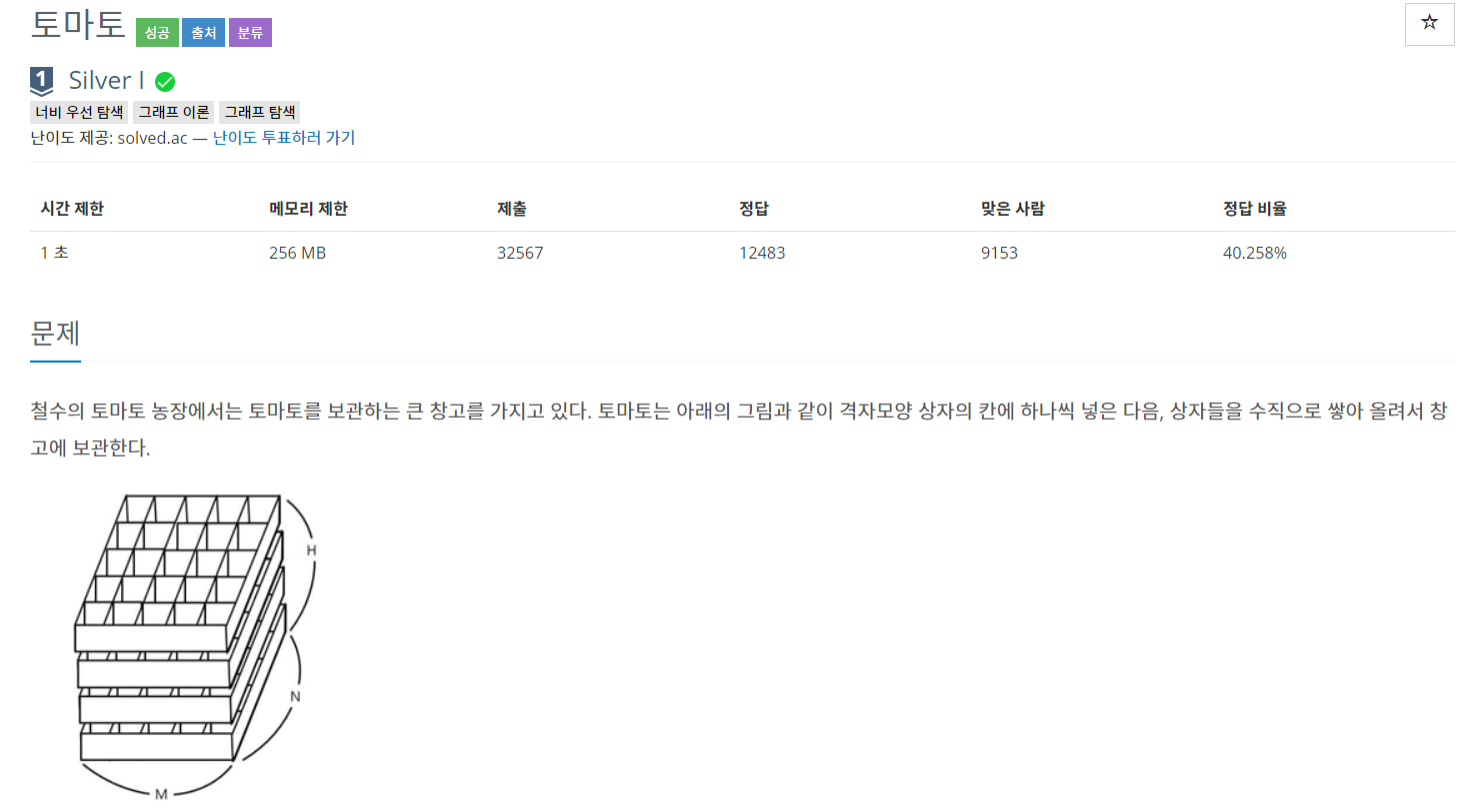 대신 7569 번은 3차원 공간에서 토마토가 존재한다고 생각하면 됨.