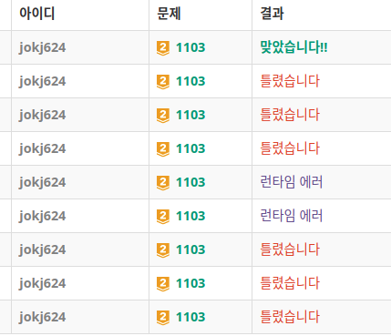 https://github.com/jokj624/PS/blob/master/1000-5000/1103.cpp