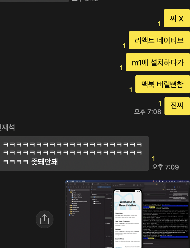 언젠가 저처럼 m1 맥북에다가 RN을 설치하며 골머리를 앓으실 분들을 위해 글 남깁니다.. 화이팅!