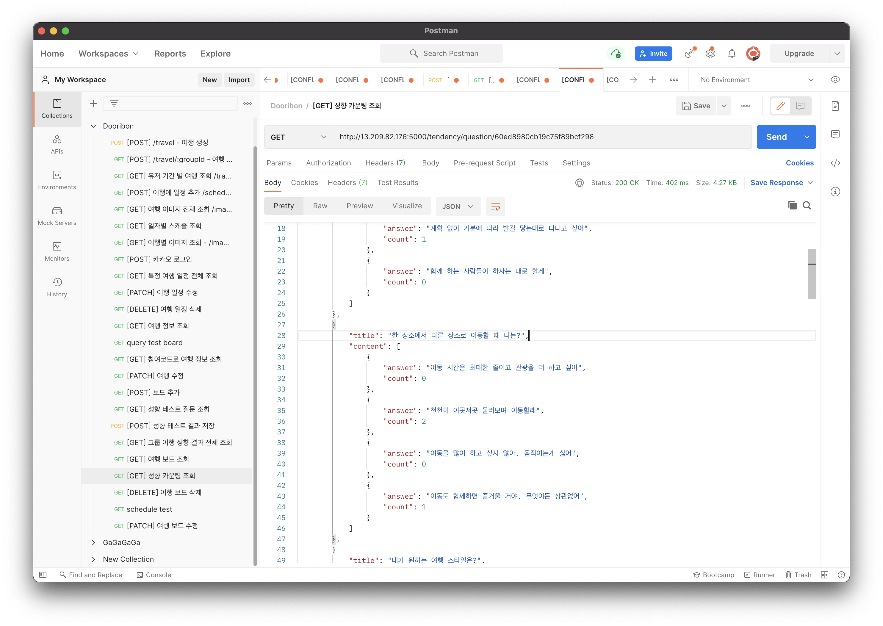 더미 데이터는 기획단에서 거의 완벽한 여행 일정을 짜줘서 우리끼리 나중에 여행갈 때 이거 쓰면 되겠다는 농담도 했다.