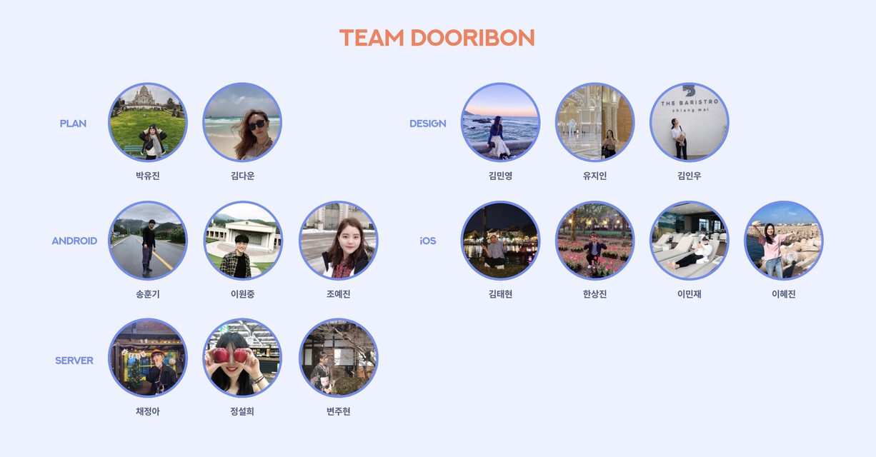 3주동안 함께 노력하고, 작업하고, 놀아준 우리 두리번 팀원들 모두에게 감사합니다!