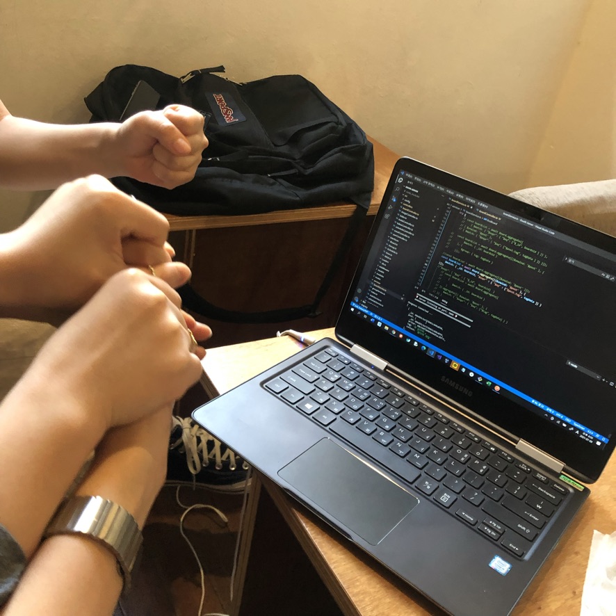 원래 앱잼은 모든 팀원이 합숙하며 진행하는 묘미였지만 현재 코로나 때문에 모든 팀원이 합숙하지는 못했다. 우리 팀은 PM, TI 언니들이 용산구청에 직접 전화하여 컨택한 후 파트별로 나눠서 합숙을 진행할 수 있었다. 아요는 먼저 진행하고 있었다.