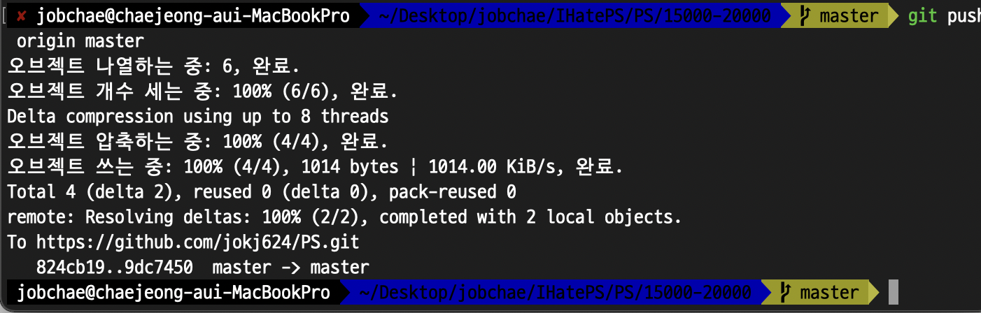 다시 push가 제대로 되는 것을 확인할 수 있다.