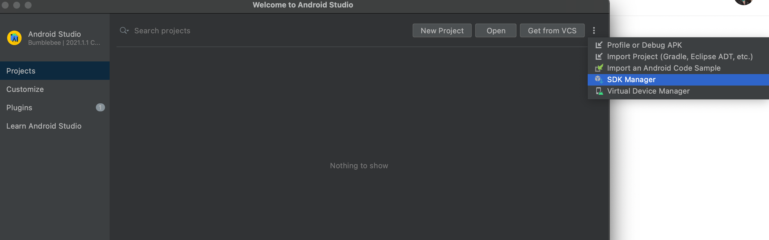 아까랑 같은 부분에서 이번에는 SDK Manager를 클릭한다.