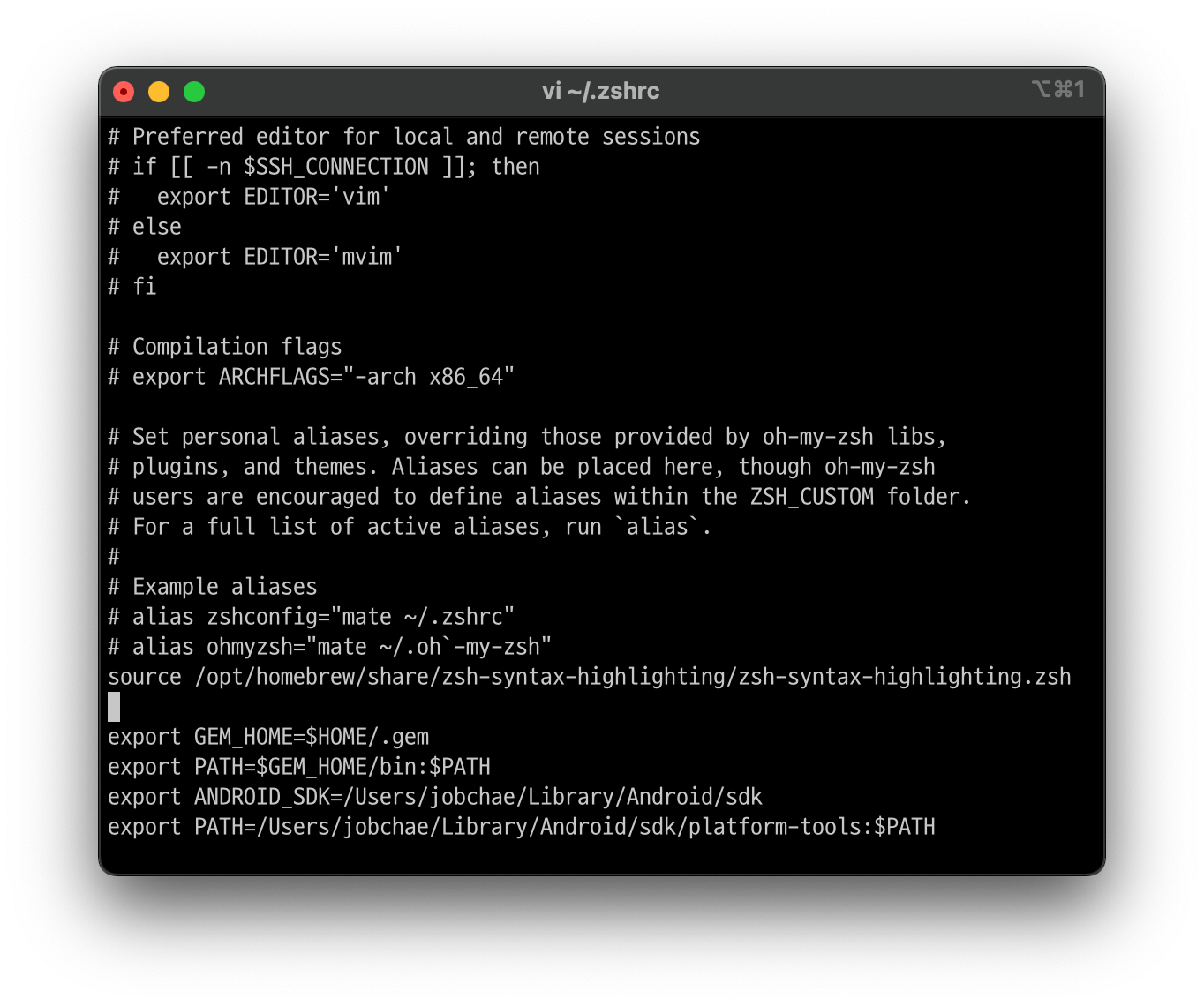마찬가지로 jobchae 부분은 본인 맥 name을 적으면 된다. 저장 후 나와서 적용해주자.
