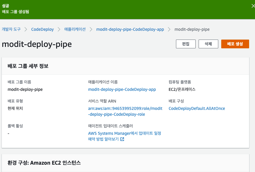 ์ด์ EC2 ์ CodeDeploy๋ฅผ ์ฐ๊ฒฐํด์ค์๋ค.