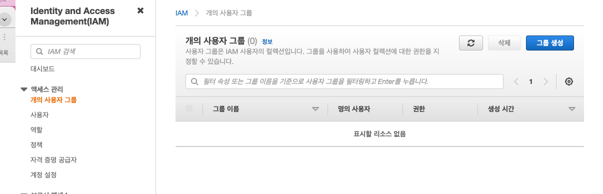 IAM ์์ ์ฌ์ฉ์ ์ถ๊ฐ๊ฐ ํ์ํ๋ IAM์ผ๋ก ์ด๋ํ์ฌ ์ก์ธ์ค ๊ด๋ฆฌ -> ๊ทธ๋ฃน์ผ๋ก ์ด๋ํฉ๋๋ค.
