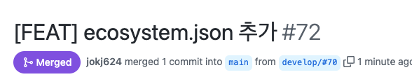 ์ถ๊ฐ๋ก ecosystem.json ์ ์ฌ๋ฆฐ ์ปค๋ฐ์ main์ merge ํ์ ์๋์ผ๋ก ์ฝ๋๊ฐ ์์ ๋๋ ๊ฒ์ ๋ณผ ์ ์์ต๋๋ค!