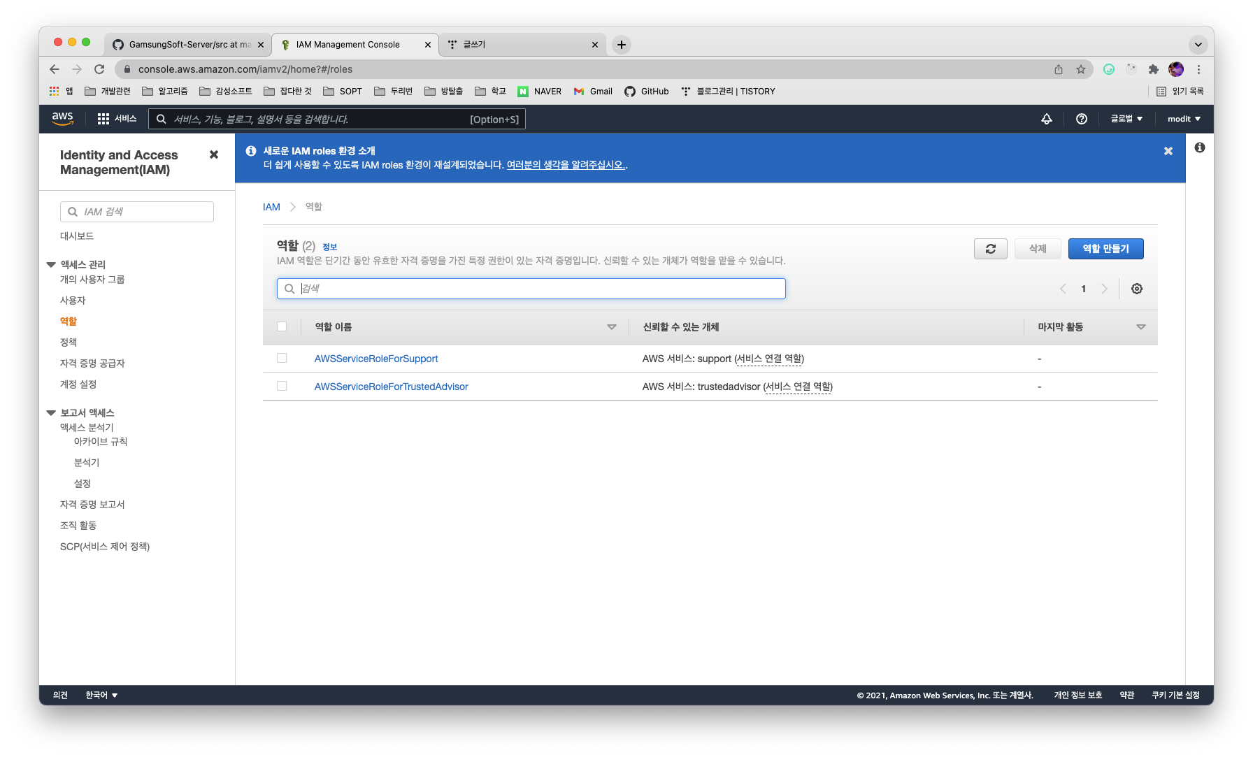IAM ์ญํ ์์ ๋ฐฉ๊ธ ๋ง๋ IAM์ ์ ํํฉ๋๋ค.