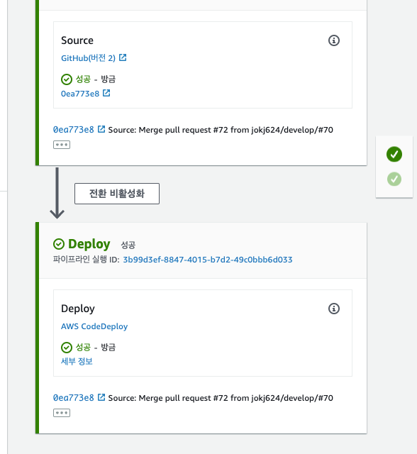 ์ด๋ฒ์๋ ์ผ๋ฐ ์ฌ์ฉ ์ฌ๋ก์์ CodeDeploy๋ฅผ ๋๋ฅด๊ณ ํ๋จ์ ๋จ๋ ์ฌ์ฉ ์ฌ๋ก ์ ํ์์ ๋๊ฐ์ด CodeDeploy๋ฅผ ๋๋ฌ์ฃผ๋ฉด ๋ฉ๋๋ค.