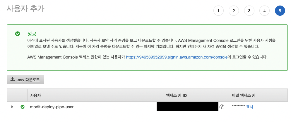 ์ฌ๊ธฐ๊น์ง ์ค์๋ฉด CodeDeploy ์ฌ์ฉ์ ์์ฑ๊น์ง ์๋ฃํ ๊ฒ์ ๋๋ค.