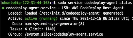 $ sudo service codedeploy-agent status # ์ค์น ํ์ธ