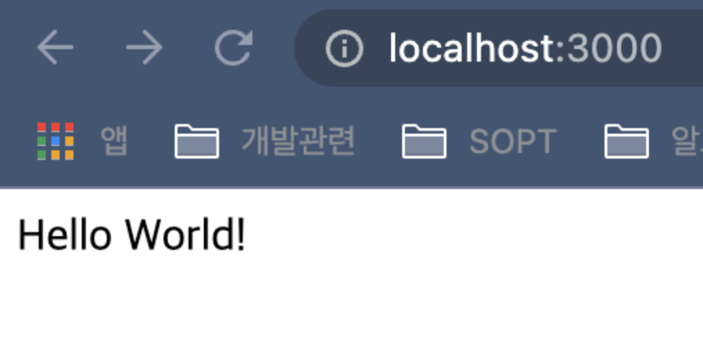 프로젝트가 만들어지고 yarn start 를 터미널에 입력하면, localhost:3000 에서 서버가 시작된다.