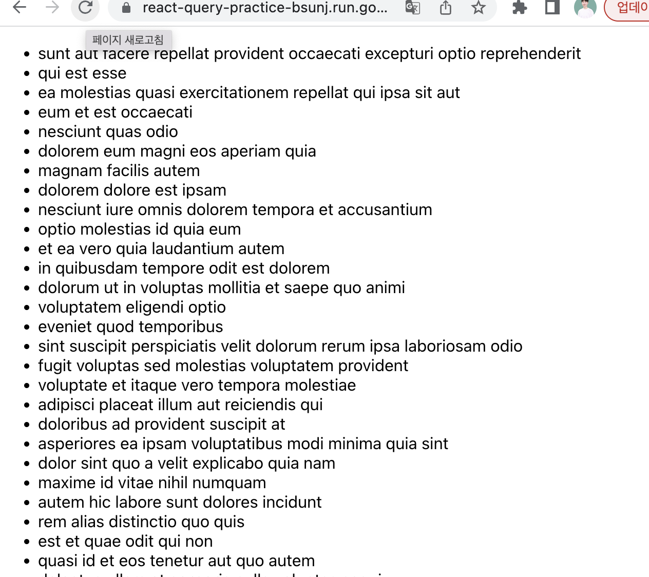 처음 데이터를 fetch 하는 과정에서는 isLoading 이 true 임으로 Loading.. span 이 뜹니다.