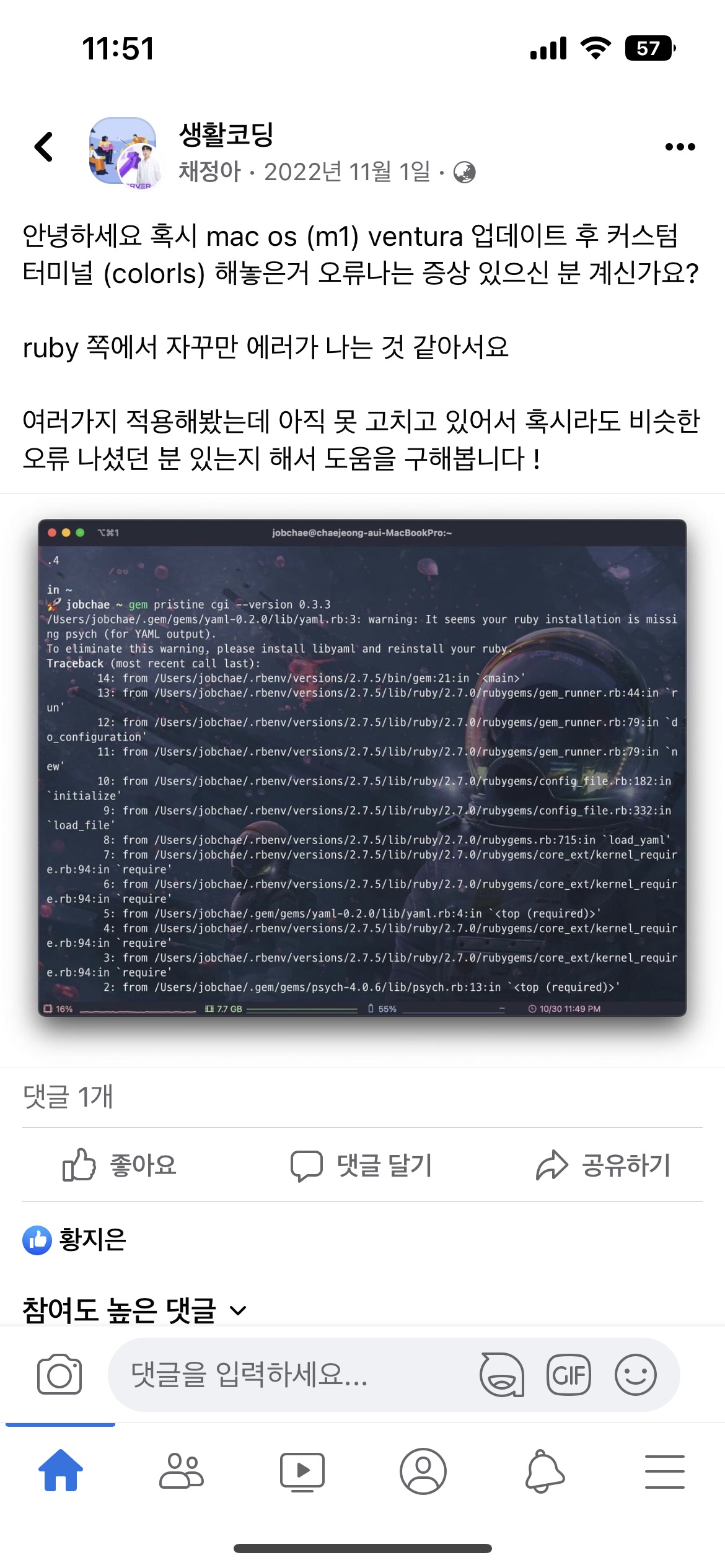 1. 최근 MacOS Ventura 업데이트 후 ruby 가 이상해졌다. (XCode도 14로 업데이트 했다.)