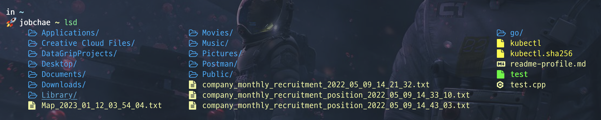 열심히 꾸며놓은 colorls 가 정상적으로 동작하고, 터미널 새 창을 열어도 더 이상 ruby 오류가 발생하지 않았다.
