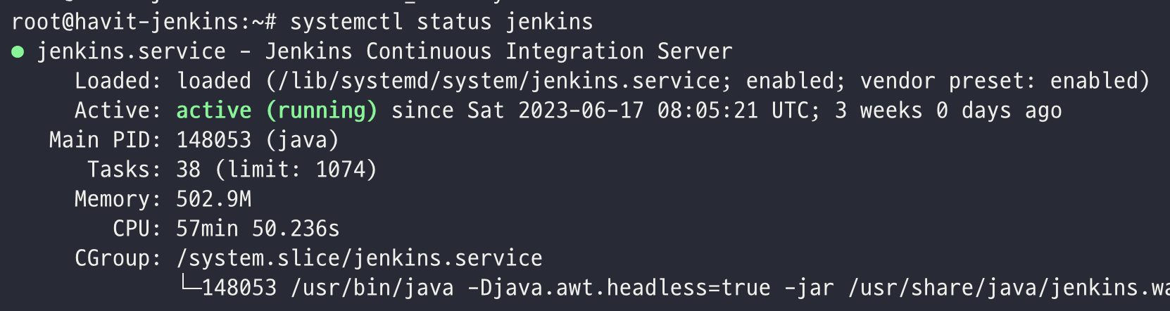 설치가 완료되었다면, Jenkins 상태를 확인해봅니다.