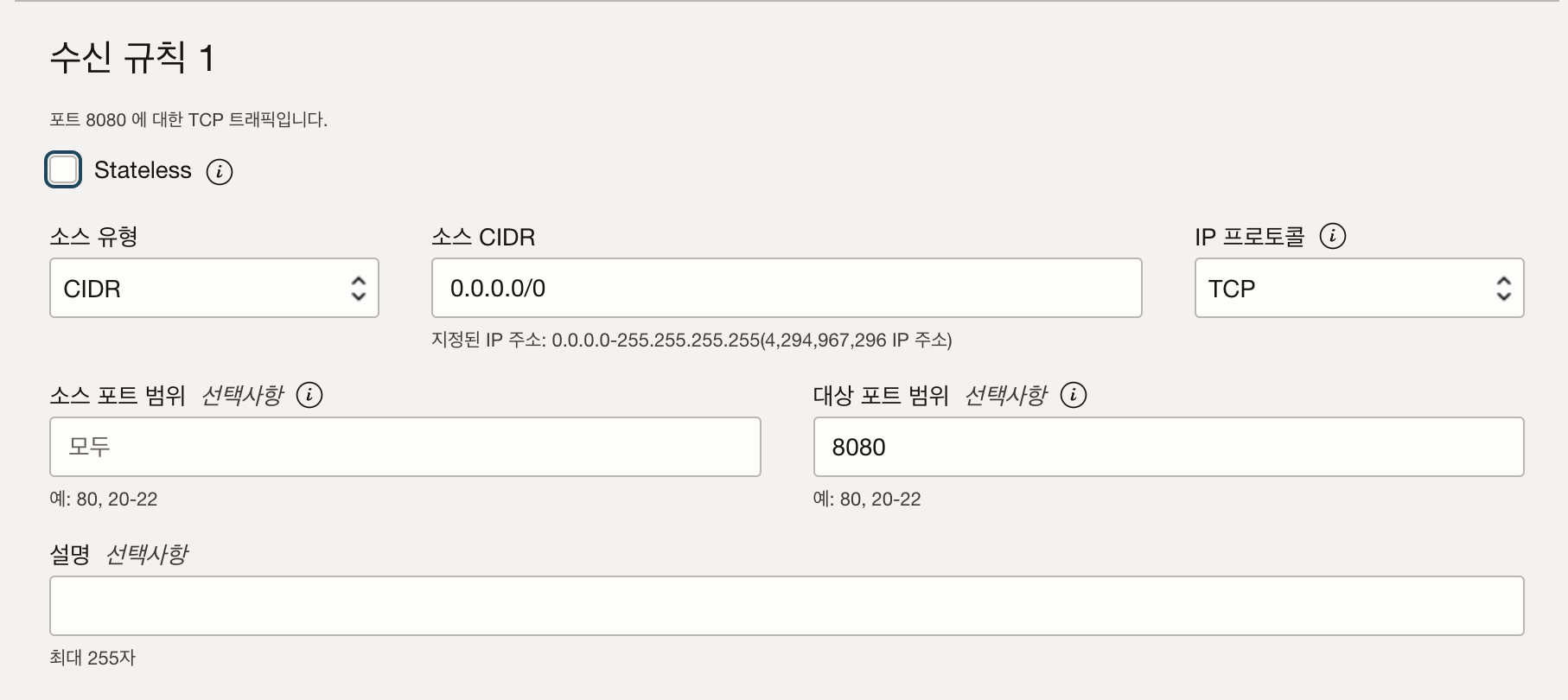 추가로, nginx로 80포트로 포워딩 해줄 예정이라 80포트도 열어주었습니다.