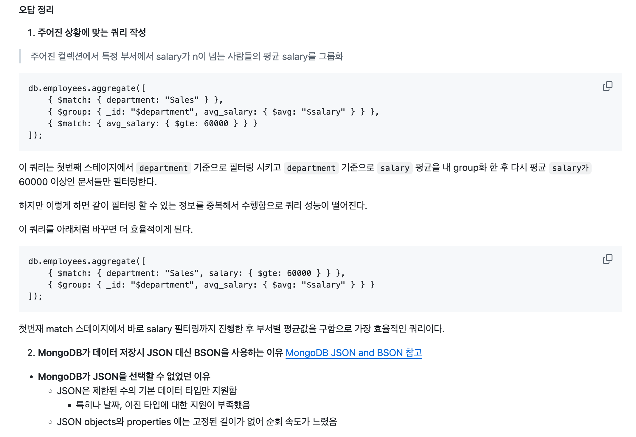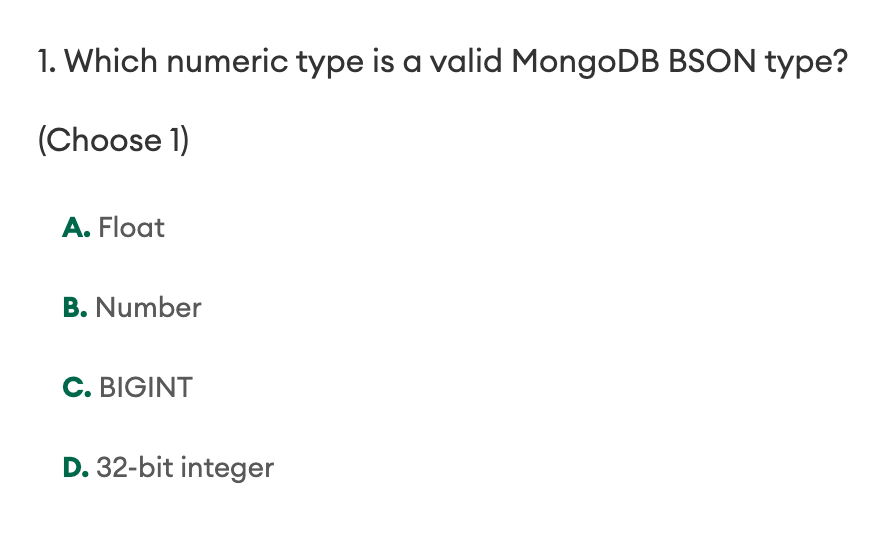 보통 아래처럼 문제가 나오는데 틀린 경우 MongoDB BSON 공식 문서에 들어가서 다시 공부하고 정리했습니다.