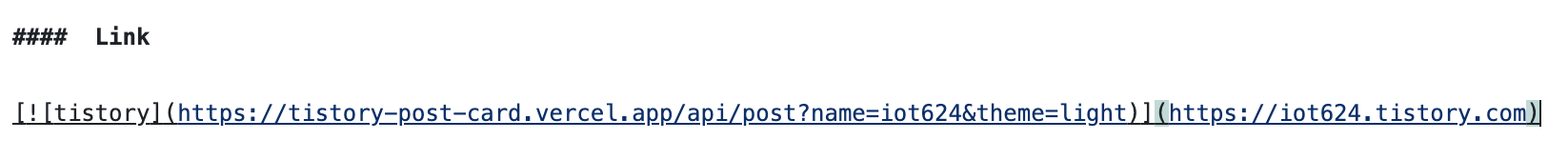 README에 티스토리 블로그 이름과 원하는 테마를 넣어 아래 링크 형식으로 삽입하면 됩니다.