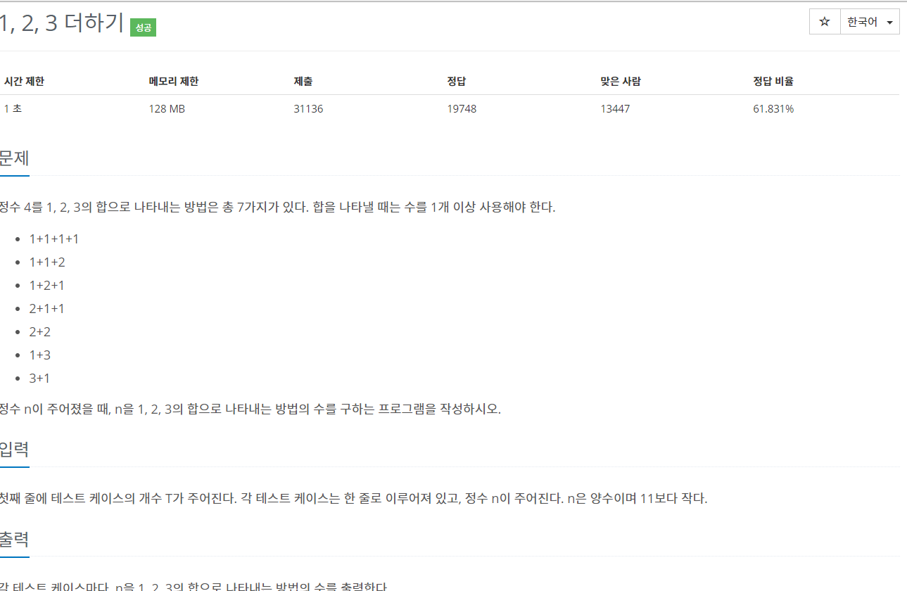 9095번: 1, 2, 3 더하기