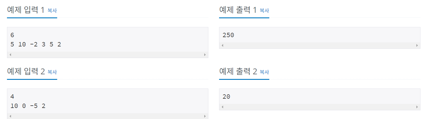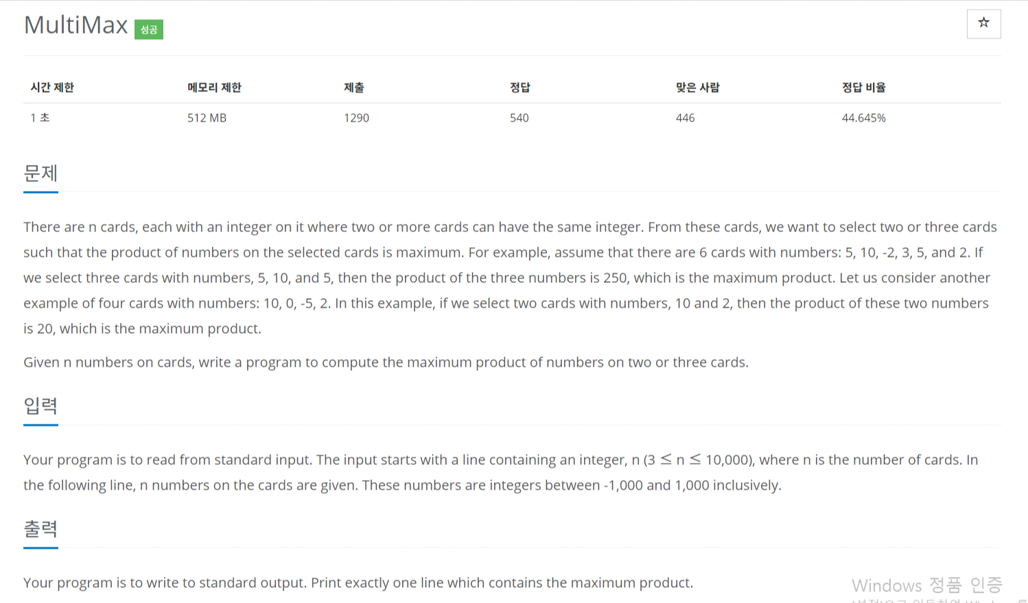 영어지만.. 해석하면 주어진 숫자중에 2개나 3개를 골라 곱한 값이 Max인 값을 출력하면 된다.